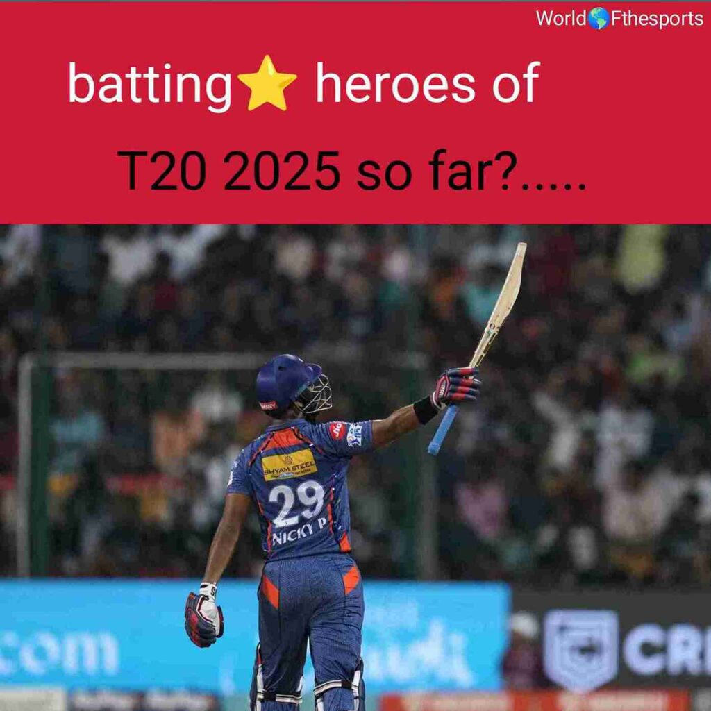 Let’s find out who WorldOfSports has deemed as the batting hero of the ongoing T-20 2025 so far. According to “World of the sports”, Nicholas Pooran is dominating T-20 cricket in 2025! Apart from this, his explosive batting and consistency have made him the hero of the season. Even the entire Sports World community is buzzing about his performance, and fans are quite amazed by the magic of his sixes. Let’s find out why Pooran is so talked about!